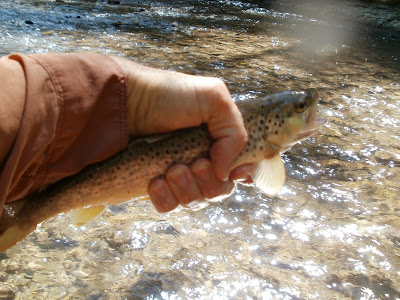 La reflexión obligada, todo y que un tanto sibilina por mi parte, y que no puedo dejar de compartir con vosotros, es que todo y la presencia de cormoranes y visones (esta última corroborada por mi parte, al menos un par de veces), y el supuesto arrasamiento de este y otros cotos por parte de legiones de furtivos, lo cierto es que basta con un dia de bonanza, y un rio tranquilo (ayer no vi a nadie más pescando, y por supuesto de la guardería fluvial, ni rastro), para que salgan truchas por todas partes, y captures peces hasta en sitios en donde llevaba mucho tiempo sin capturar ninguno.
