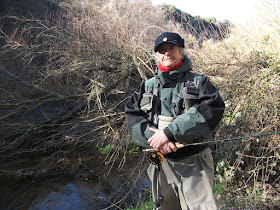 Todo es caer la tarde, en pleno corazón del invierno, y alargarse las sombras sobre el río. Miré el reloj: eran casi las tres de la tarde, estaba en la orilla umbría y el sol estaba pronto a ocultarse tras la colina. Una micción, previo volver al agua, me hizo ver, al bajarme el vadeador, cuan empapado estaba... ¡hasta los calzoncillos estaban como para escurrirlos!. Me esperaba otro rato de escalofríos, y por eso me conjuré  a que como mucho a las tres y media de la tarde saldría del río con la caña ya plegada.